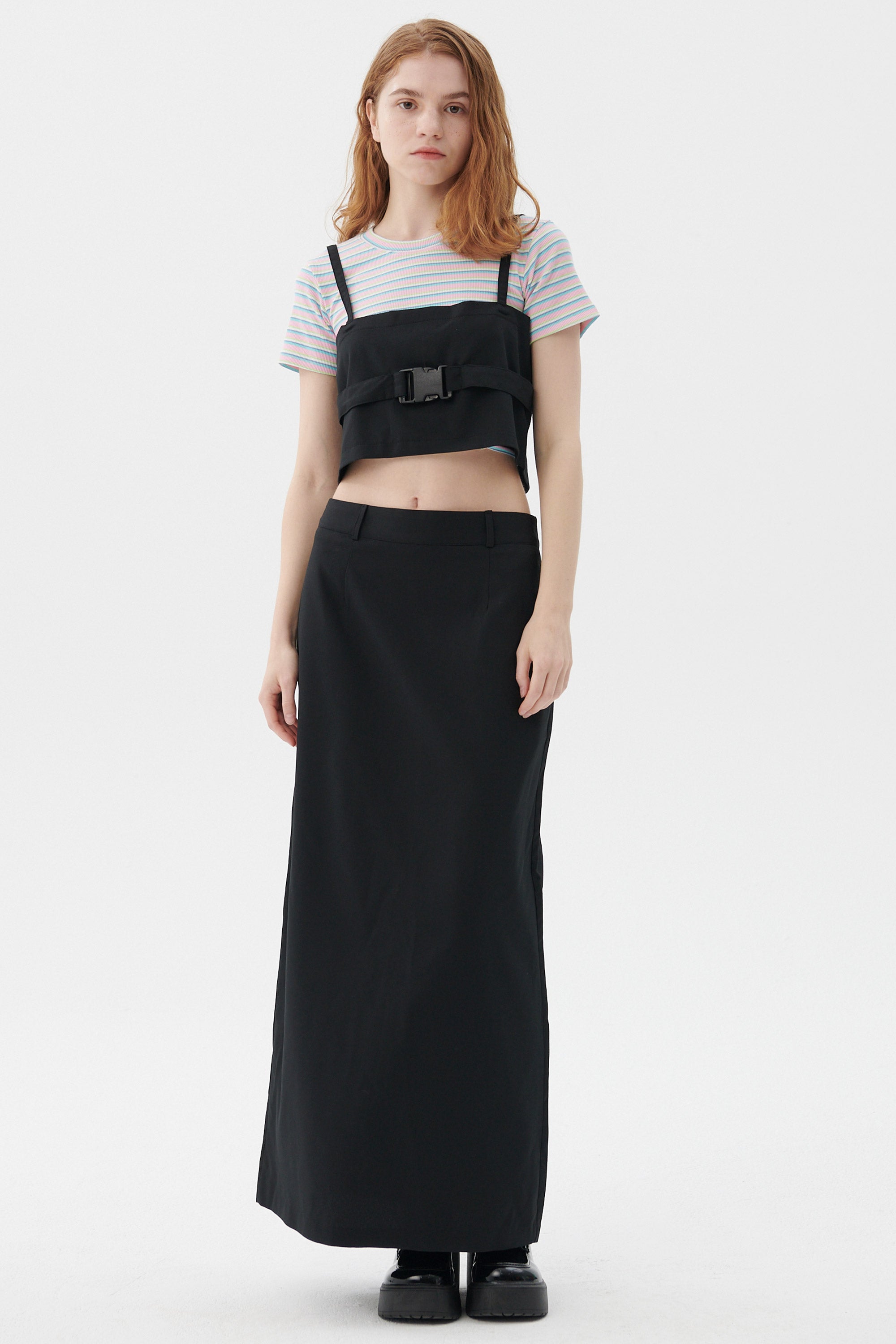 Tucked pleat skirt with two belts lines Side concealed zipper Limited offer : Free belts! Product Specification :60%Polyester 35%Rayon 5%Spandex […]